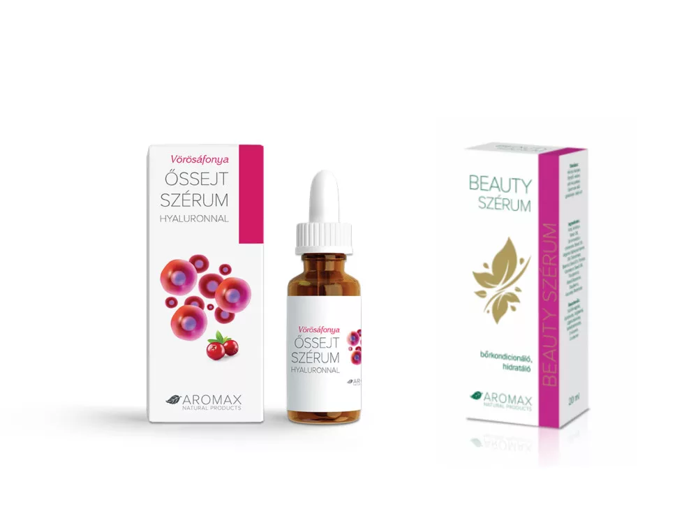 Vörösáfonya Őssejt Szérum Hyaluronnal: A szérum olyan természetes összetevőket tartalmaz, mint a vörösáfonya őssejt, mely jótékony hatást gyakorol a napozás során, a bőrt érő UV károsodások okozta bőröregedés tüneteire. A hyaluronsav biztosítja a bőr rugalmasságát. A szérumot ajánljuk reggel az arcápolás részeként és este az éjszakai bőrfeszesítési fázisban. Mindkét termék vegán, mesterséges színezék- és illatanyagmentes. Kapható a www.aromax.hu webshopban. Kövesd az AROMAX-ot Facebookon is: @aromax.hu