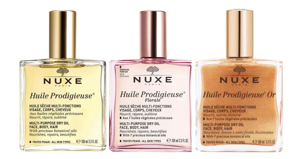 Multifunkciós luxus kényeztetés a bőrnek és hajnak. A Nuxe ikonikus terméke az Huile Prodigieuse® szárazolaj hétféle természetes olajjal táplálja az arcot, testet és hajat. Fedezd fel a Huile Prodigieuse® szárazolajok különböző fajtáit : meleg érzéki vagy virágos illatjegyekkel (FLORALE), vagy arany csillámokkal (OR).