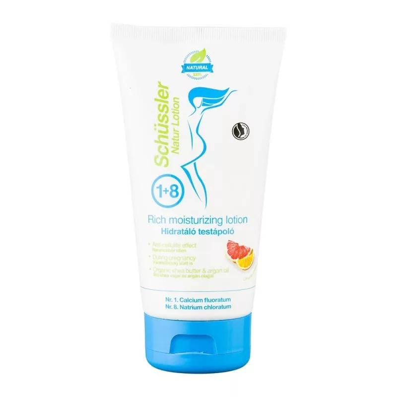 A száraz bőr veszíthet rugalmasságából, ráadásul gyakran viszkető, feszítő érzéssel is jár. A natúr 1+8-as mélyhidratáló testápoló olyan értékes hatóanyagokat tartalmaz, mint például az E-vitaminokban és telítetlen zsírsavakban gazdag bőrfiatalító argán olaj és a hidratáló shea vaj. Emellett 2 Schüssler-féle ásványi sót tartalmaz, melyek egyaránt őrzik a bőr rugalmasságát és a hidratáltságát. A könnyen felszívódó, lágyan hidratáló bársonyos krém citrus illatával gyorsan a kedvenced lesz! Keresd a partner gyógyszertárakban, vagy a schsuslerkozmetikumok.hu webshopban.